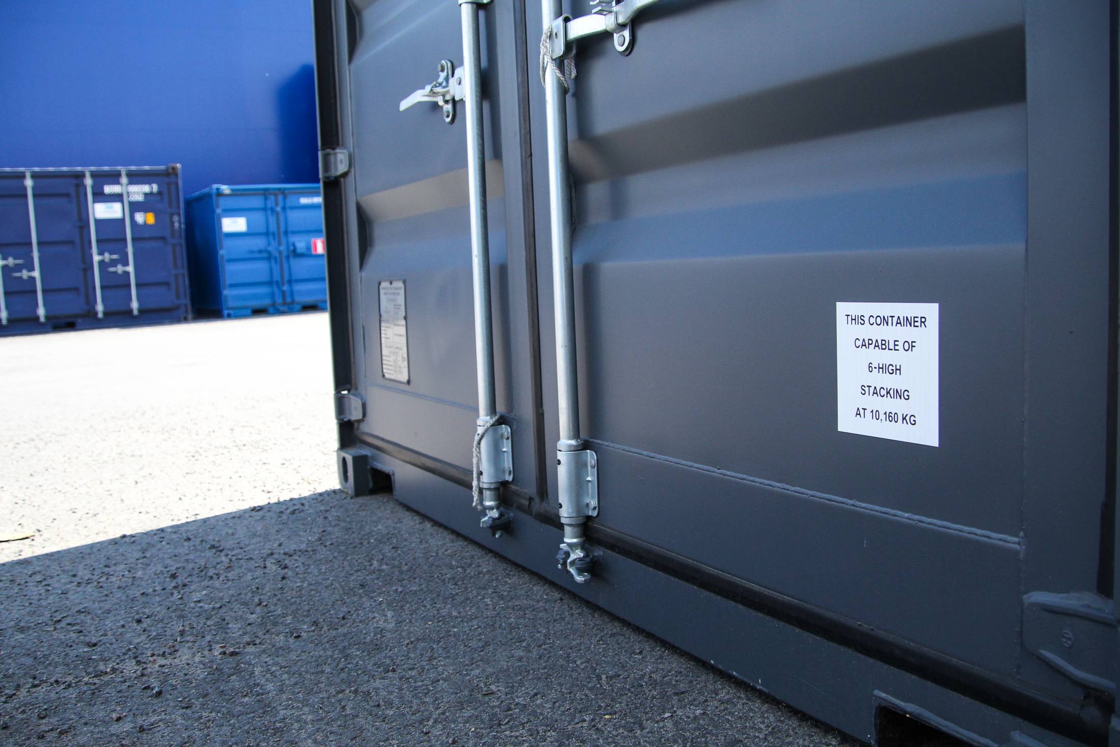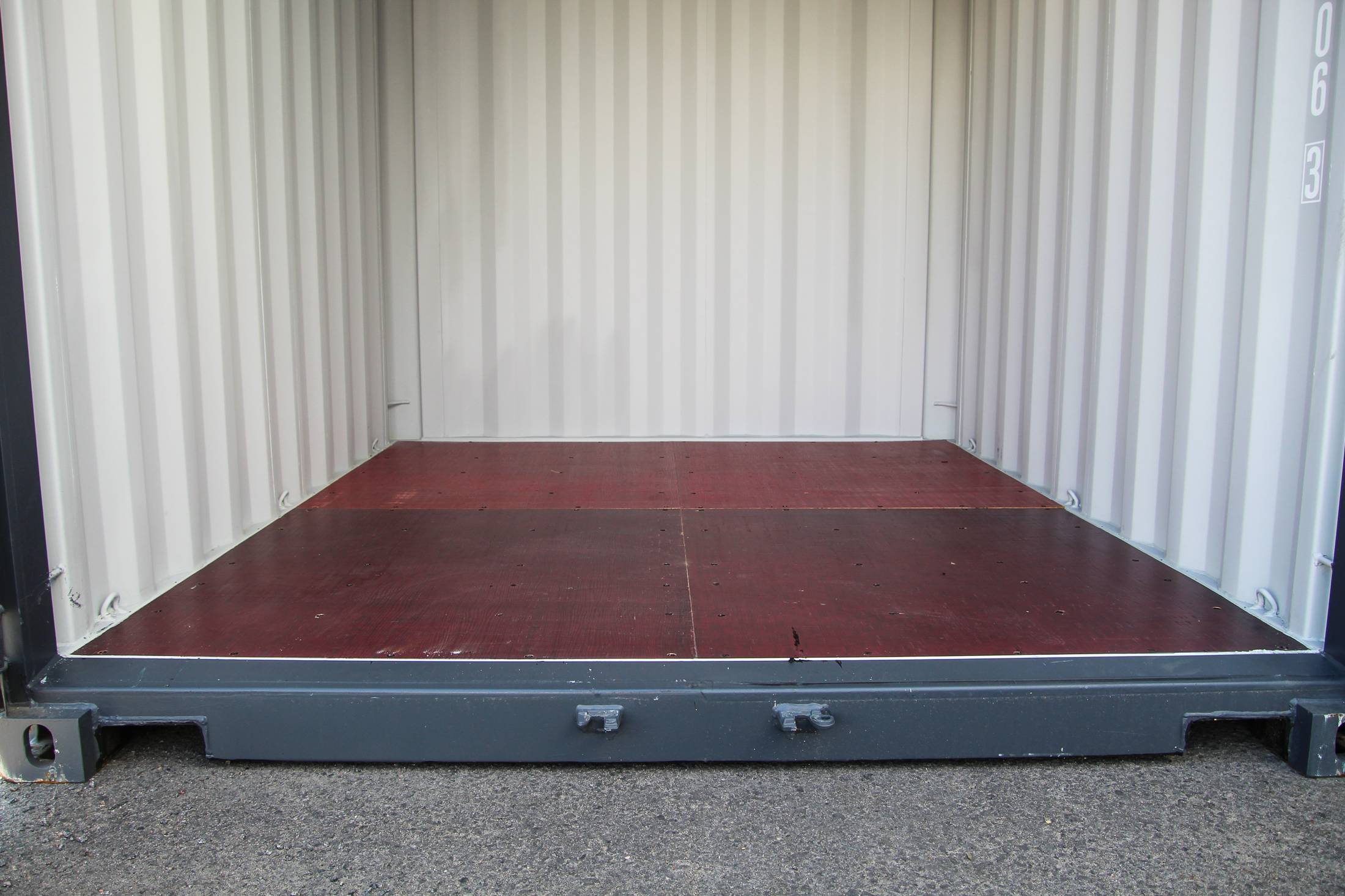 El contenedor tiene por un lado puertas dobles con barras de bloqueo y una carcasa protectora para la cerradura. El contenedor está equipado de serie con pasillos para montacargas y un suelo duradero de madera contrachapada o bambú de 28 mm. La ventilación se realiza mediante las válvulas de ventilación del contenedor. El color estándar es el elegante gris grafito RAL 7024.